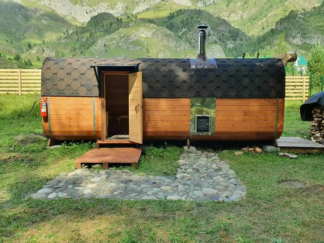 - На территории доступно 5 чанов разной вместимости, все — на берегу Катуни.