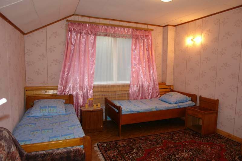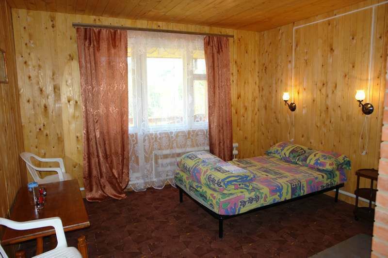 В домике две двухместных и одна пятиместная комнаты с отдельными входами, проживание эконом-класса. Открытая веранда с освещением позволяет устроить общее застолье или просто пообщаться, не мешая остальным отдыхающим. Умывальник размещен на веранде, туалет на территории.