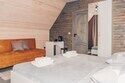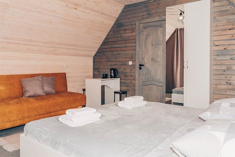 В распоряжении гостей несколько деревянных одноэтажных коттеджей, в каждом из которых — по два уютных двухместных номера. Номера в домиках разных категорий: можно выбрать бюджетные варианты с общим санузлом и душем на этаже, а можно разместиться в Студиях, оборудованных кухней. В некоторых номерах предусмотрены балконы или террасы. В теплое время года отдыхающим также предлагаются летние домики с удобствами на территории.