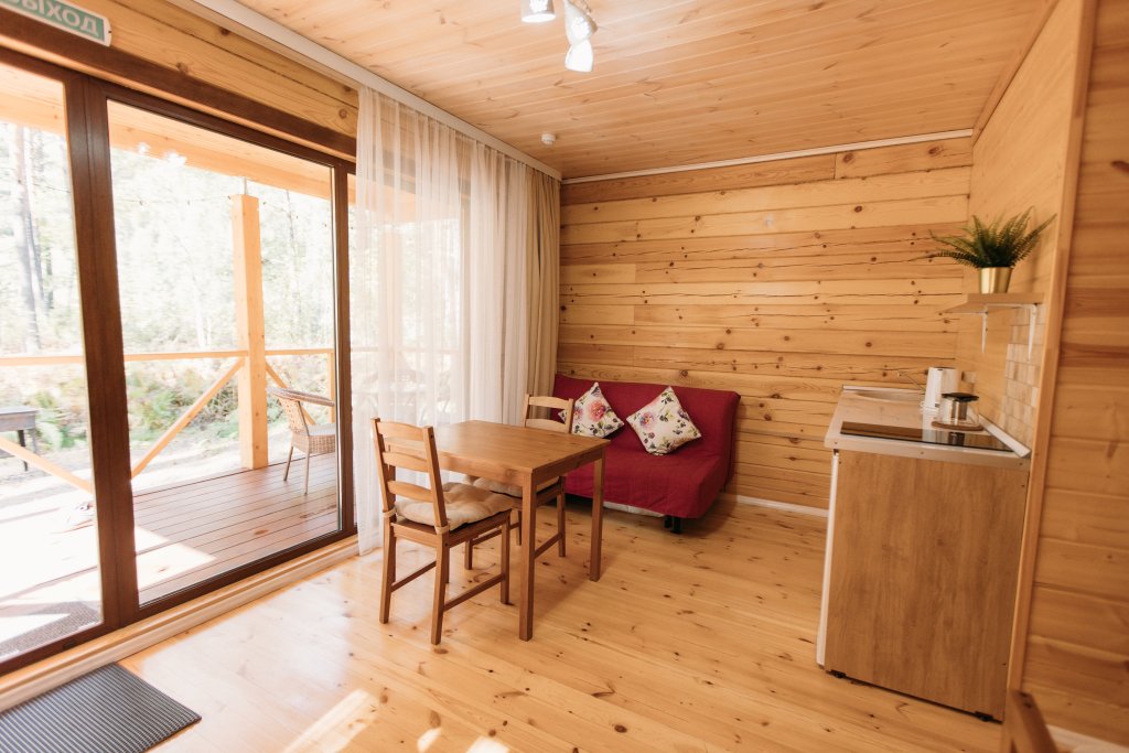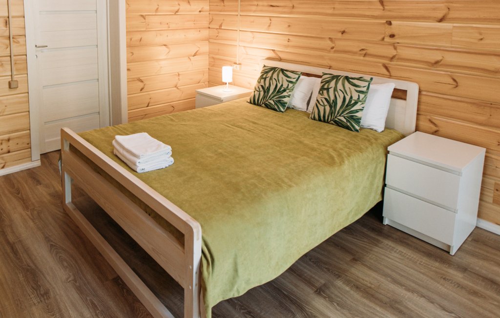 Кровать на втором этаже, посыпаешься и видишь в панорамном окне небо, деревья, реку.