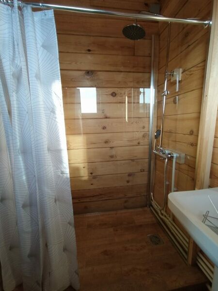 Домик ориентирован на три места. Кровати с анатомическими матрасами "Аскона", новые одеяла, подушки. санузел с необходимыми принадлежностями.