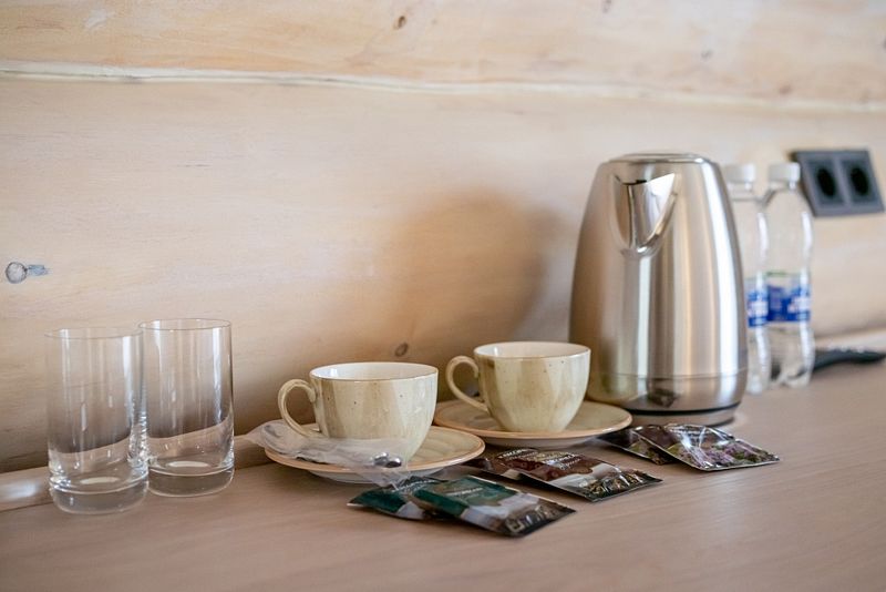 В стоимость посещения таежной бани входит натуральный Телецкий мед, чай из ароматных алтайских трав, веники для парения, использование банных халатов, тапочек, полотенец и простыней.