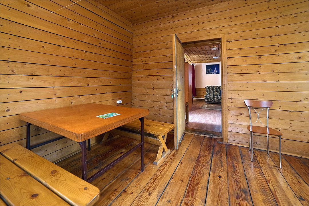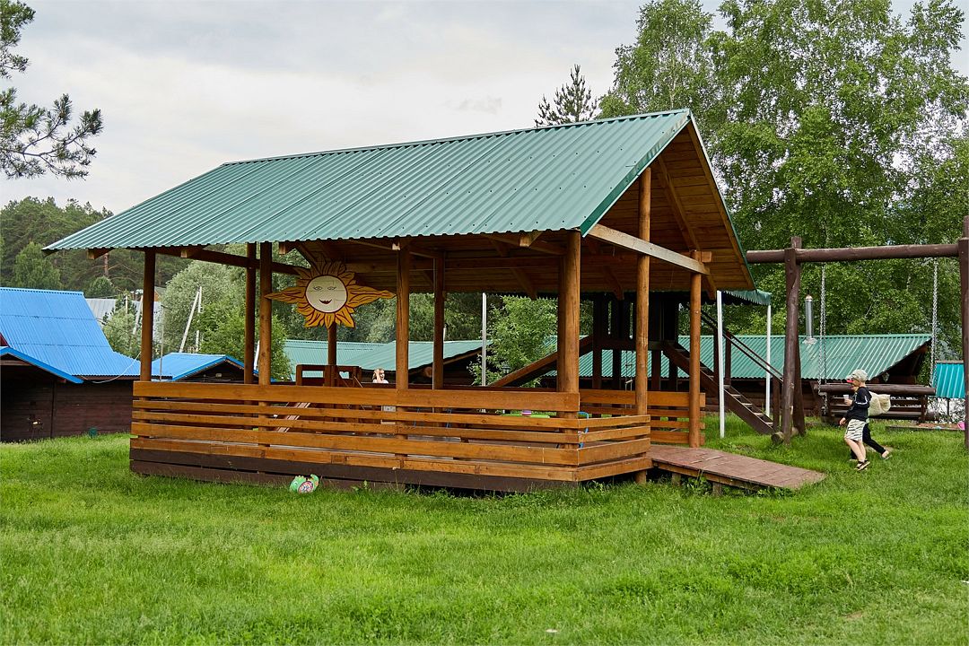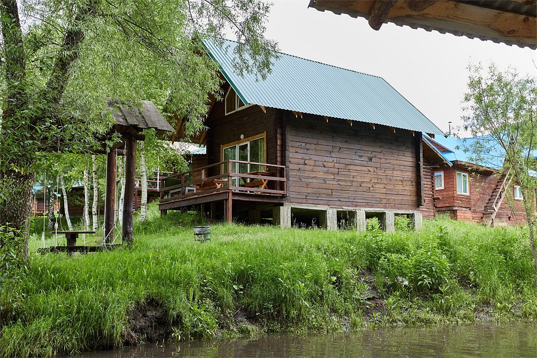 Летний дом выполненный из бруса с террасой, открывающей вид на территорию базы. Располагается рядом с выходом к р. КатуньУслуги и удобства