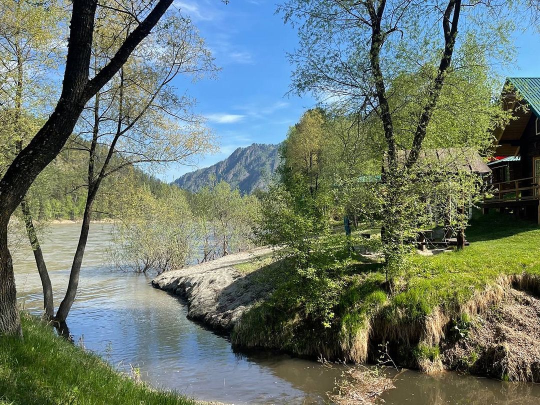 Путешествие с семьейХорошая база в красивом местеБаза расположена в очень живописном месте на берегу Катуни, с видом на горы. Доехать легко. Мы жили в домике у реки - есть минимально необходимые удобства: туалет, душ, посуда, холодильник. Цена недорогая. Завтраки, конечно, довольно простые. Есть мангалы, баня, бесплатный инвентарь для спортивных игр: бадминтон, волейбол, настольный теннис. В любой момент можно заказать моторную лодку и доехать до Камышлинского водопада (цена в один конец 150 рублей). А на машине можно легко съездить в любые места, например, на озеро Манжерок, которое расположено неподалеку. В целом, все понравилось, за умеренную цену прекрасно провели время.