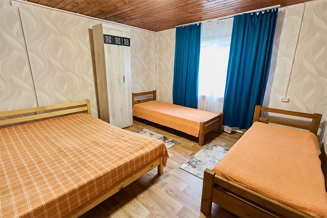 водонагреватель, двуспальная кровать, односпальная кровать, шкаф для одежды, вешалки, зеркало, ковер, две комнаты, раковина, отопление, душ, вид во двор, стул, тумба, туалетные средства, туалет, мангал, мини-холодильник, номер для некурящих, межкомнатная дверь, уборка номера, мыло, можно с питомцамиВ гостиничном номере