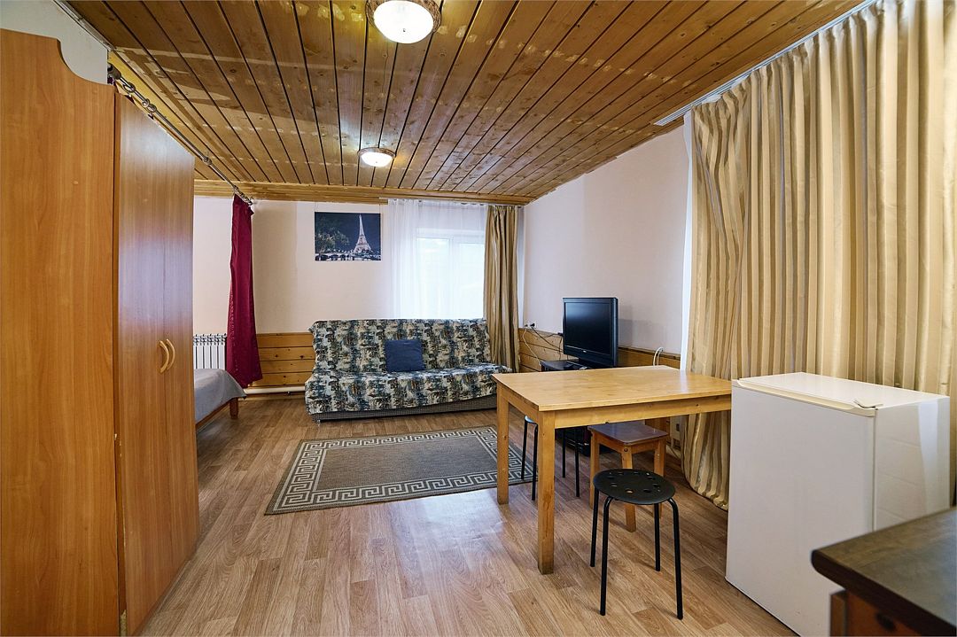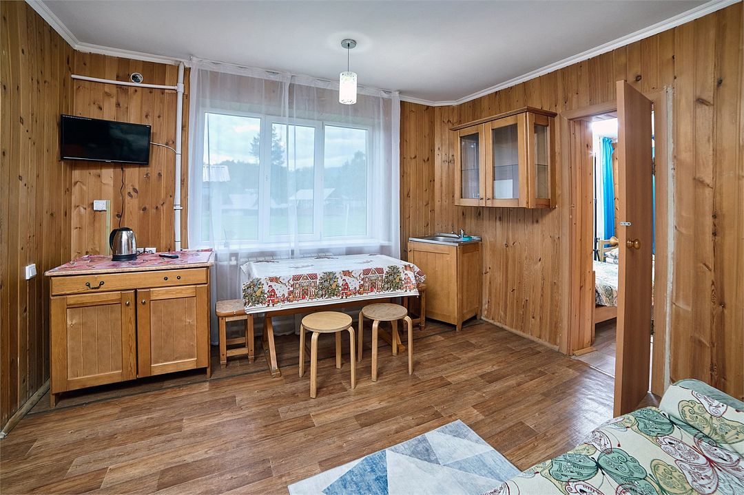 Студия с деревянной отделкой. Расположен в домике, где созданы все условия для комфортного проживания среди красоты Алтайской природы.Услуги и удобства