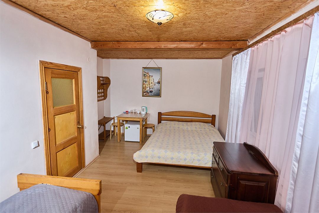 Трехместный номер с входом через гостиную коридор, небольшой и уютный.Услуги и удобства