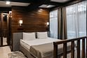 Номер площадью до 62м² оборудован 2мя двуспальными кроватями king-size (1,8*2,0 м) или 2 односпальными кроватями (0,9*2,0 м) и одна king-size (1,8*2,0 м) и 2мя диванами.