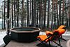 Двухэтажный номер с панорамными окнами, балконом и террасой, на которой размещен чан-купель.