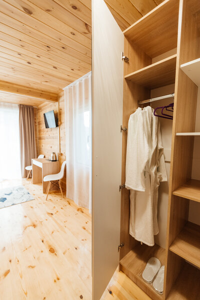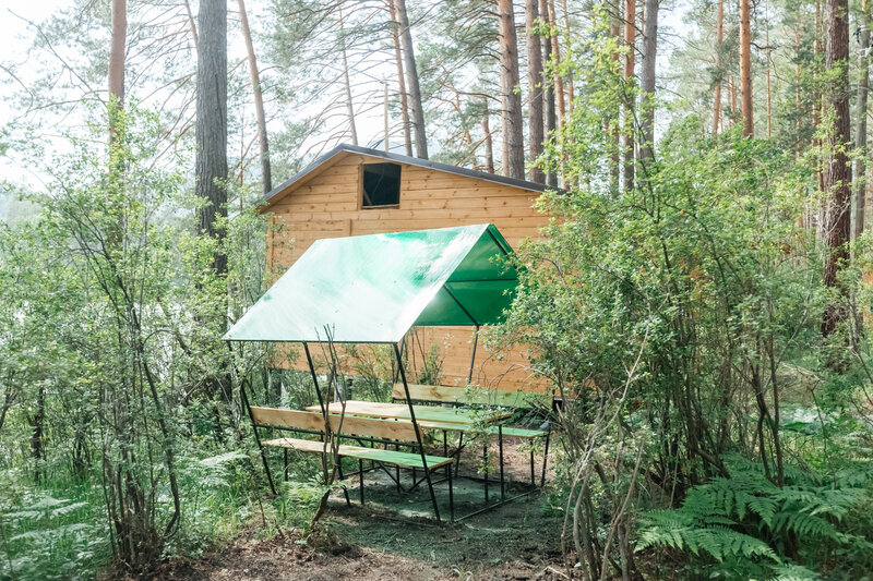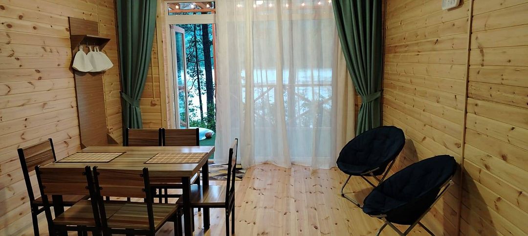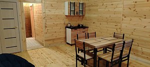 В доме: односпальный диван, два стула, махровые халаты на двух гостей. Санузел: ванна, четыре полотенца. К домику прилагается индивидуальная бесплатная беседка.