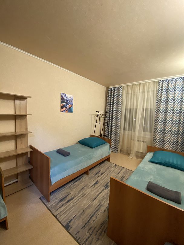 В каждой спальной комнате установлены кровати с постельными принадлежностями и полотенцами, столик, шкаф для одежды, полки.