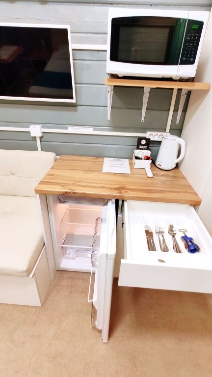 Возле домика №1 в красивой и просторной беседке есть бытовая техника для хранения и приготовления пищи, посуда и столовые приборы для еды. Продукты питания продаются в соседних магазинах. На специально оборудованных площадках можно организовать шашлыки, запечь на открытом огне свежие овощи и рыбу, а потом полакомиться ими самостоятельно или в приятной компании.