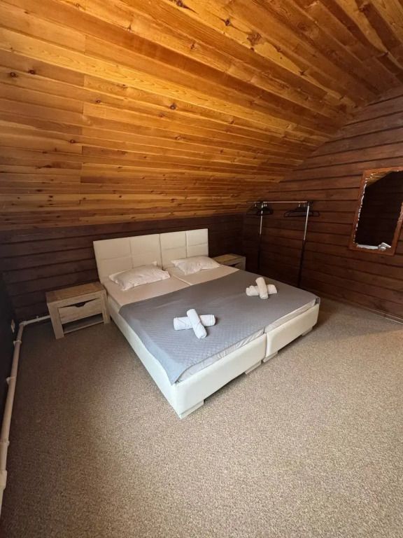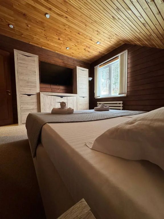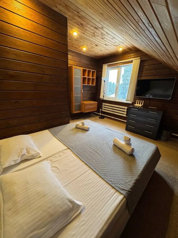 На втором этаже две спальни с двух и трехместным размещением. В каждую из них есть возможность добавления дополнительного спального места в виде раскладушки.