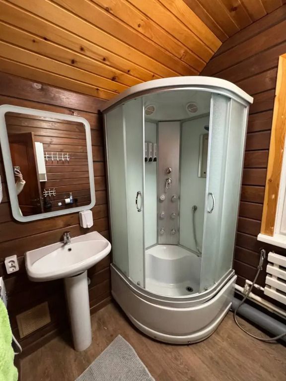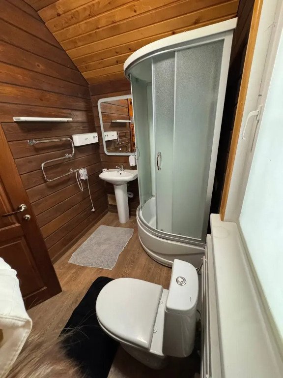 На третьем этаже 3 двухместные спальни и санузел с душевой кабиной. Кровати трансформер.