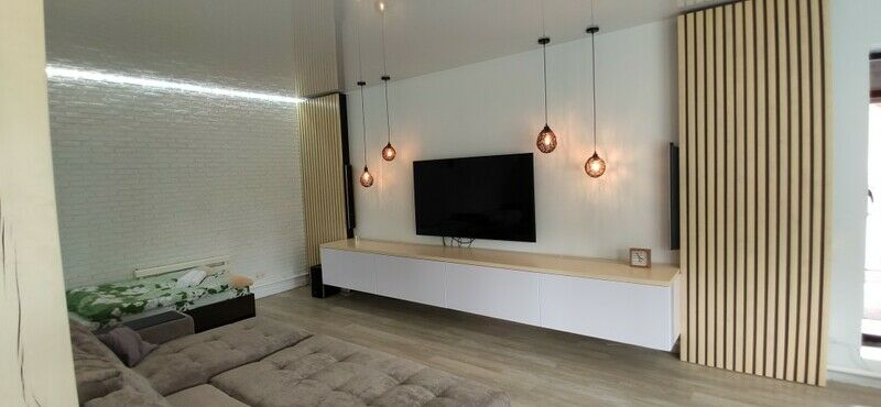 К услугам: на первом этаже дома расположена большая гостиная с большим диваном, домашним кинотеатром столами которые можно составить в один длинный стол для посиделок вечерами. Барная стойка. Гостиная оборудована полноценной кухней и санузлом.