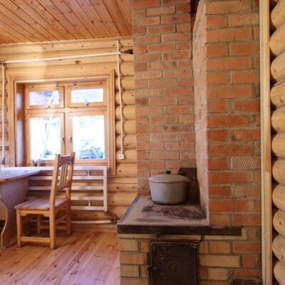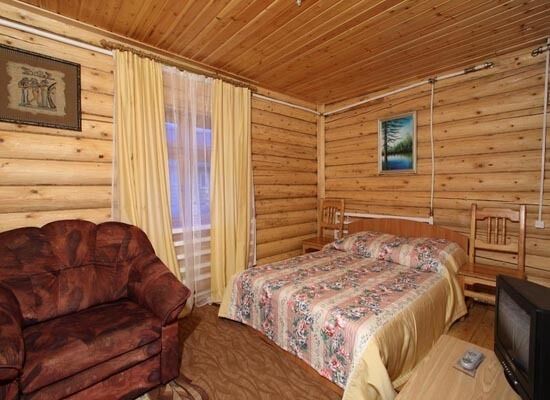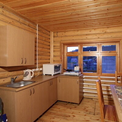 - Бревенчатый коттедж с четырьмя комнатами, кухней, печью и бильярдной, с открытой верандой с видом на лес.