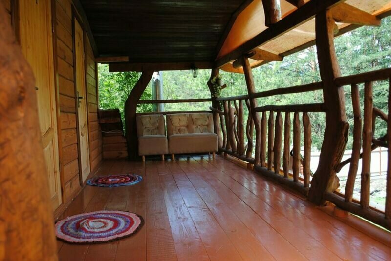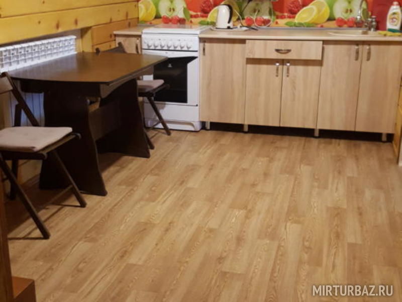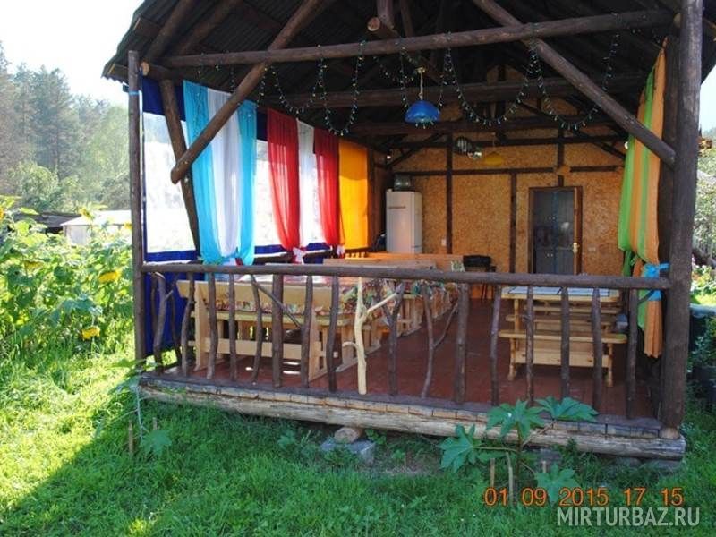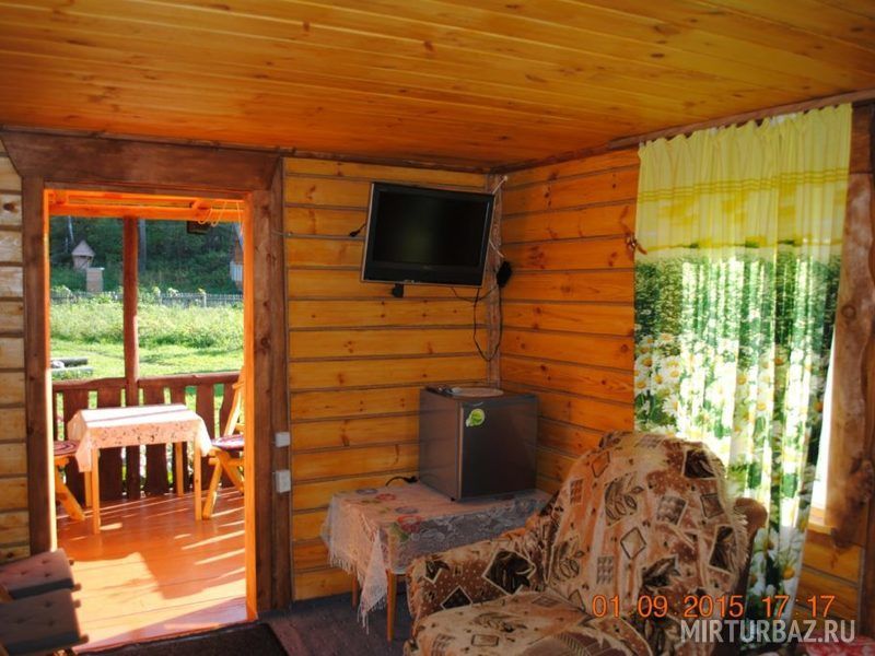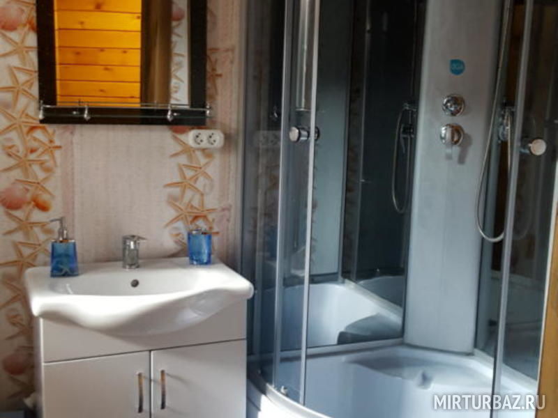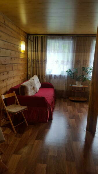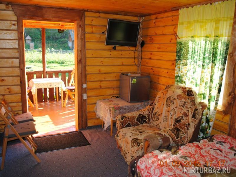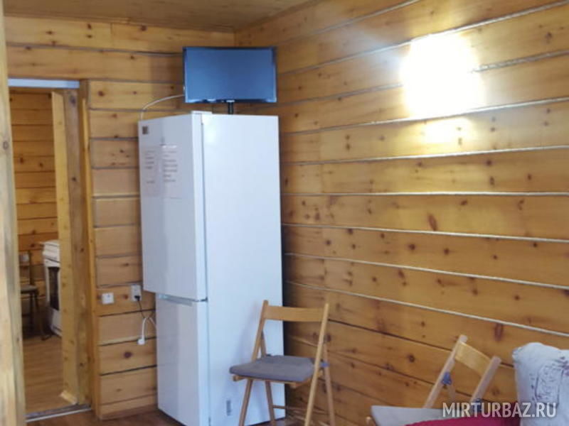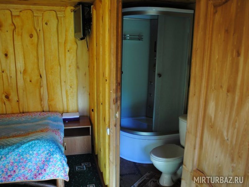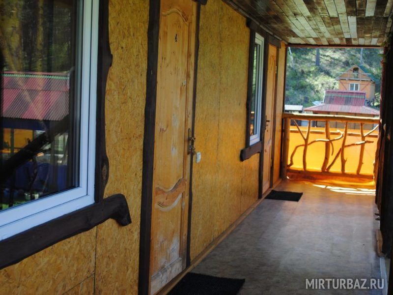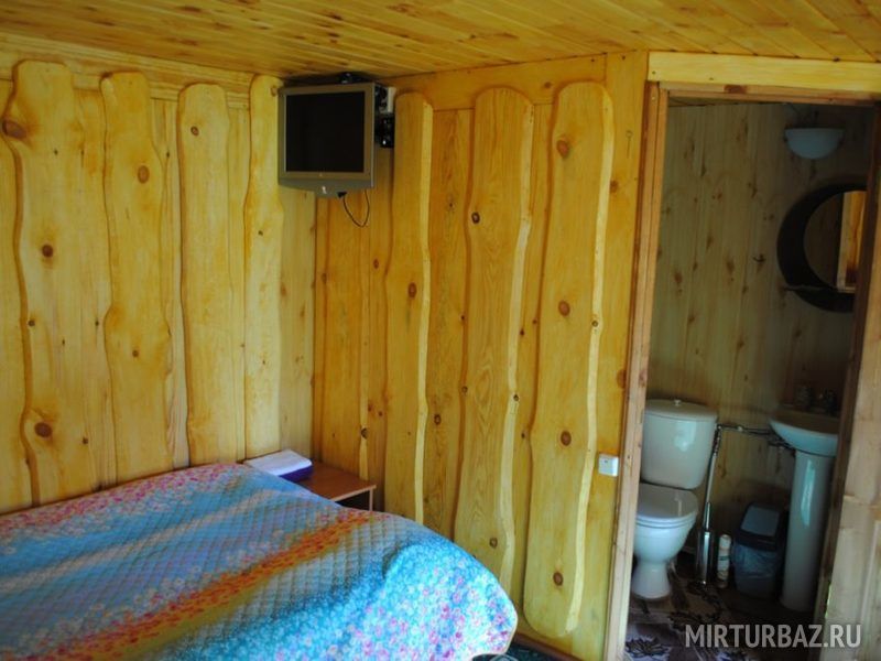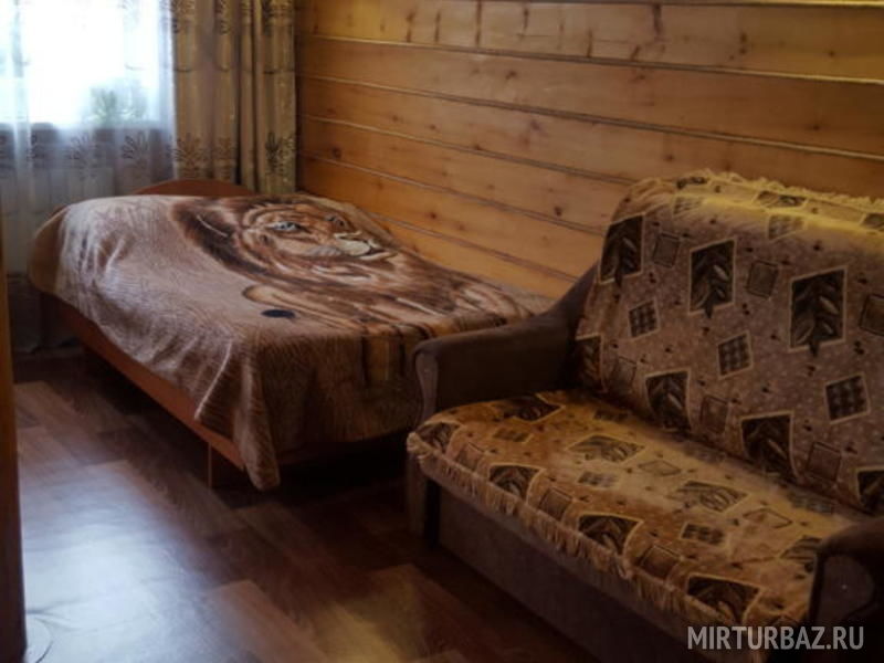 В номере: 2-х спальная раскладная софа и 1,5 спальная кровать, зеркало, столик и тумба, 2 табурета. Благоустроенный санузел на территории.