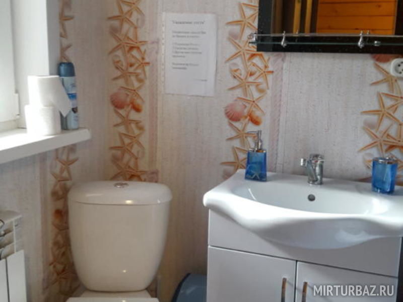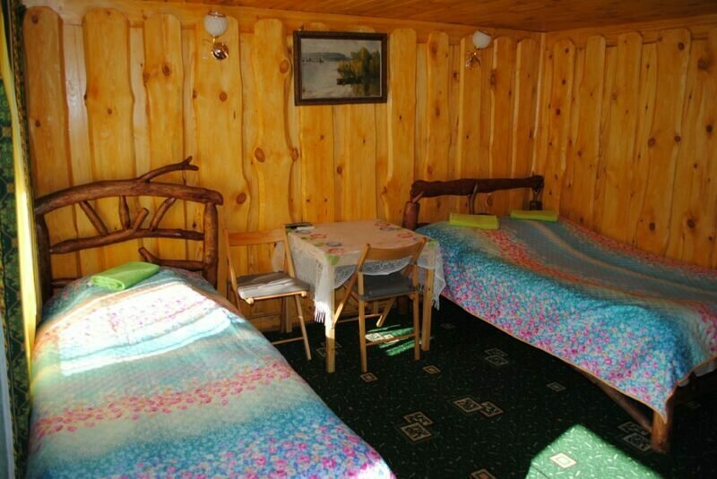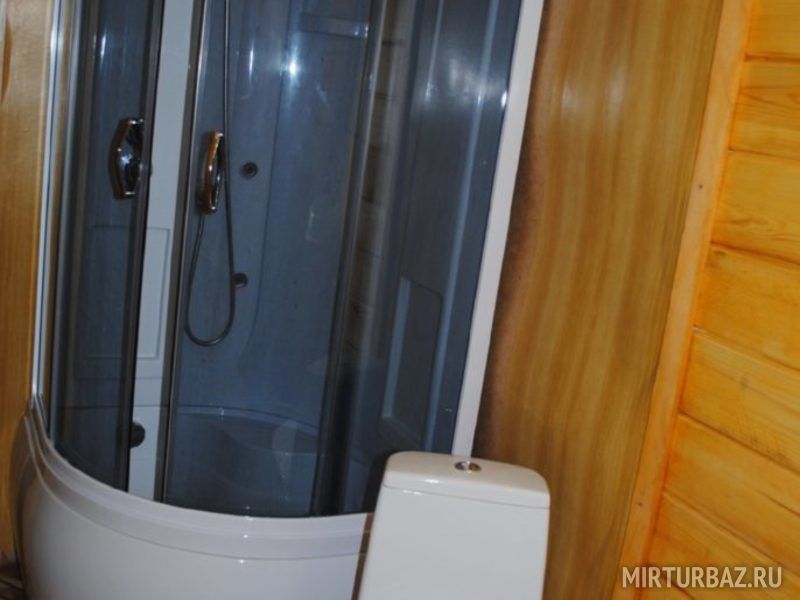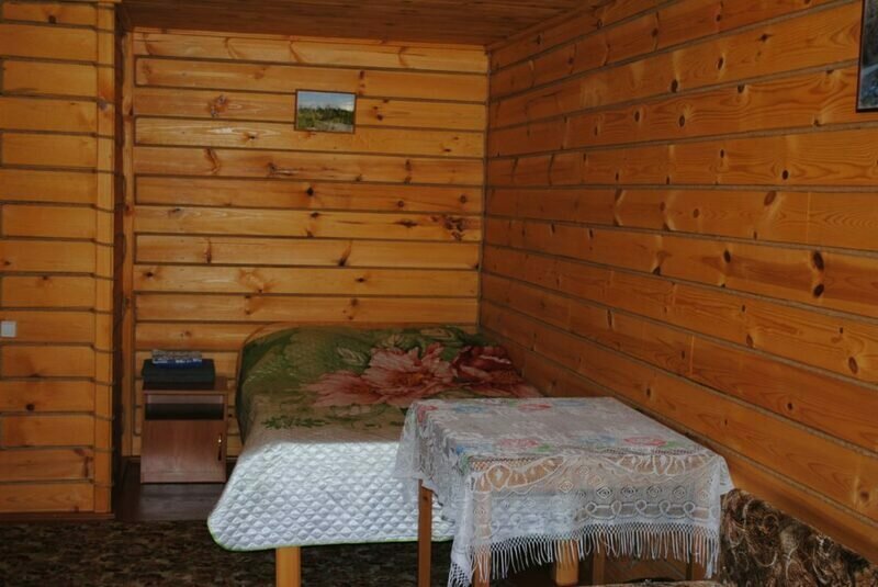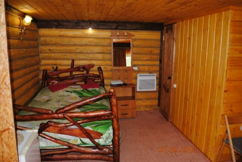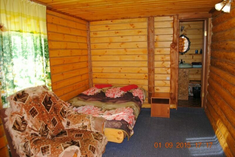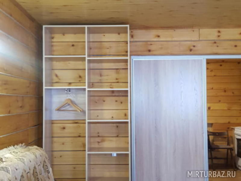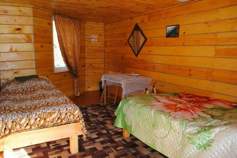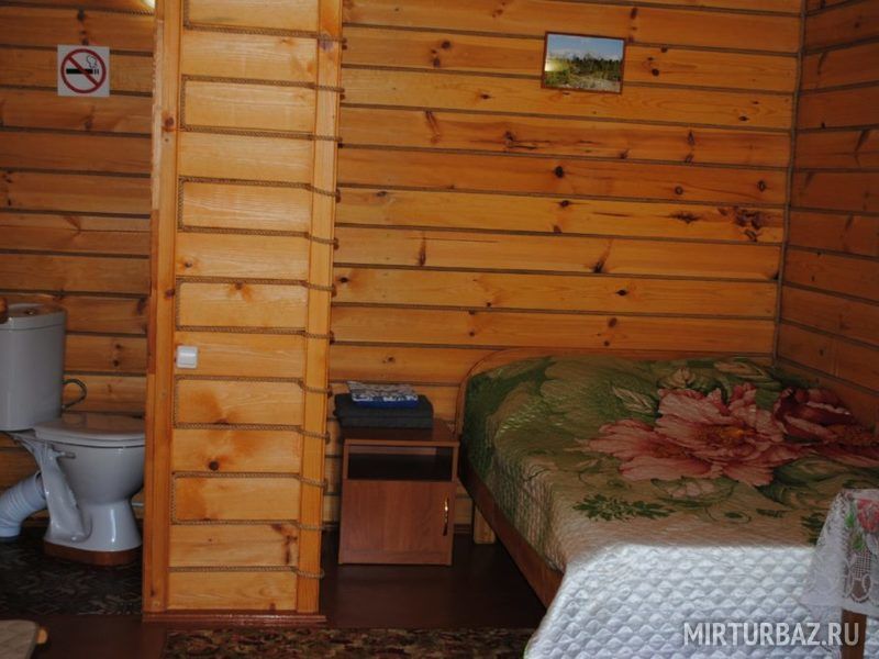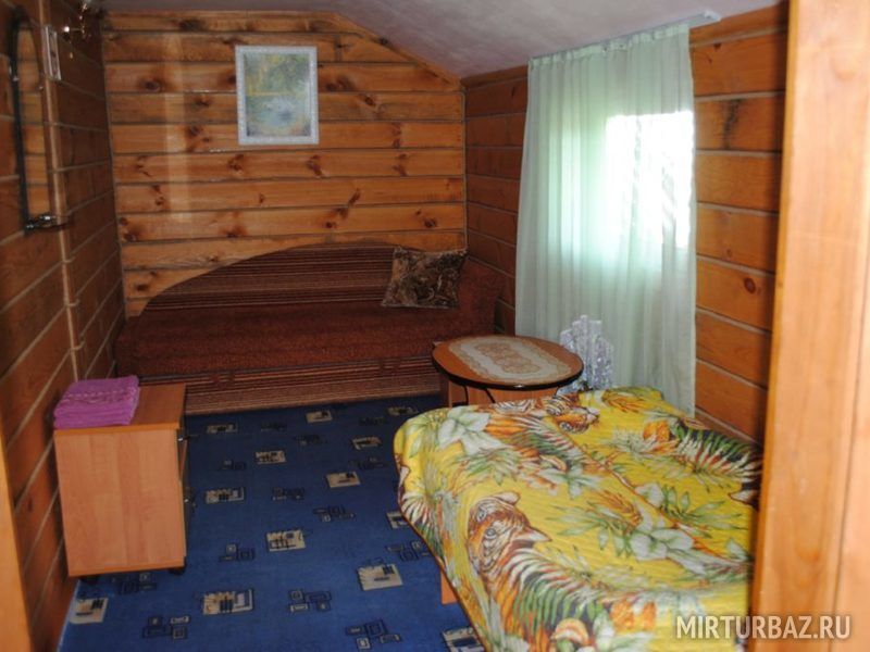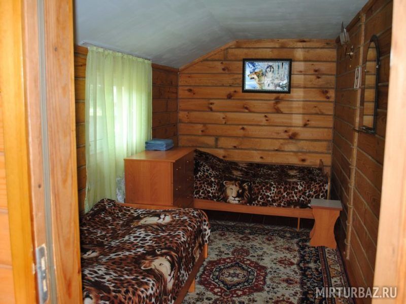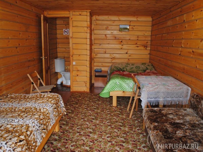 В номере: 2-х спальная кровать и 1,5 спальная кровать, зеркало, комод, 2 табурета. Благоустроенный санузел на территории.