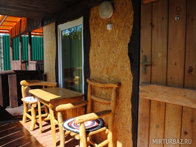 В номере: 2-х спальная кровать, доп. Место (раскладное кресло), стул, прикроватная тумба, телевизор, холодильник, с/у (душ, туалет). Выход на уютную террасу со столом и стульями (общая с номером №7)