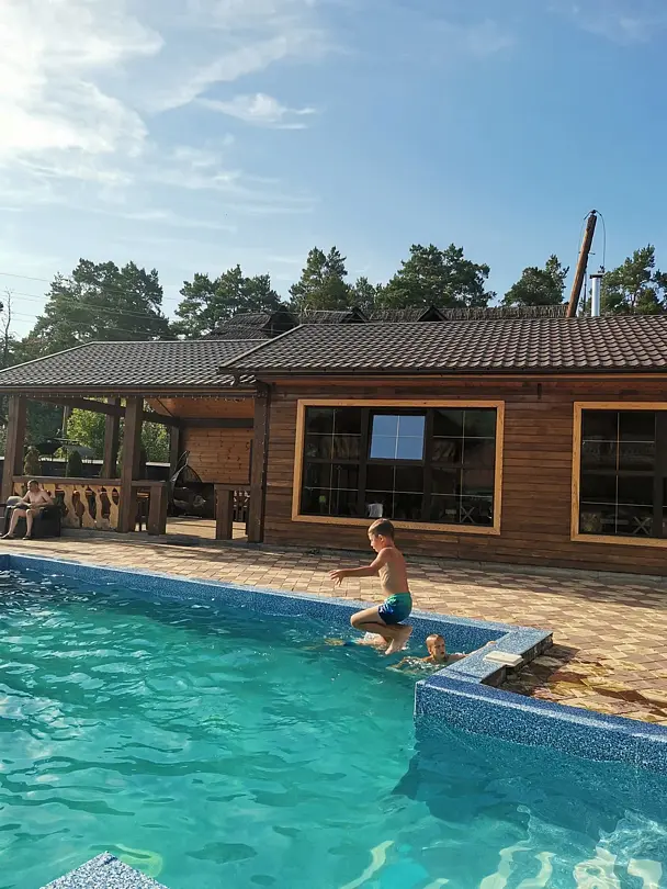 Тип бассейна: открытый бассейнРядом с бассейном: шезлонгиПериод работы: летний сезонТеплый бассейн в летний период.