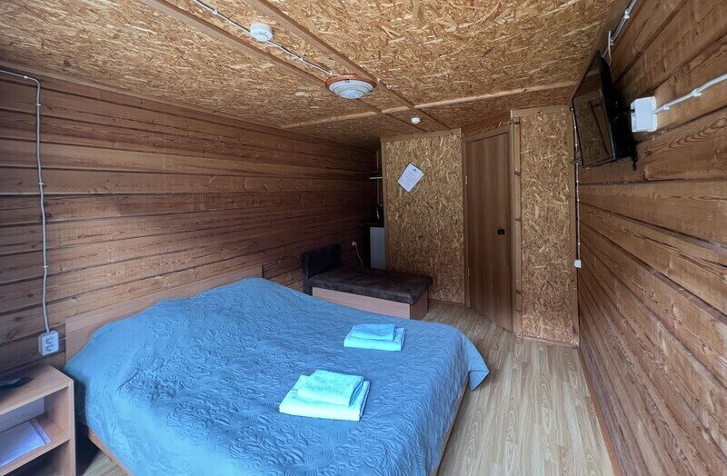 К размещению предлагаются уютные номера и отдельные коттеджи с удобными кроватями, телевизором и интернетом, а также индивидуальным санузлом с душем. Предоставляются комплект из постельного белья и полотенец.