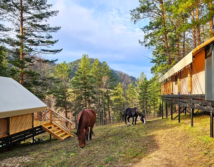 Глэмпинг «Вдохни Алтай» располагается в горах, в уединённом месте на берегу горной реки, в часе езды от аэропорта «Горно-Алтайск». До глэмпинга можно доехать по хорошей асфальтированной дороге. Это идеальное место для тех, кто ищет тишину и гармонию с природой.