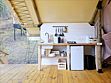 В сафари-тенте есть все необходимое для полноценного отдыха: кухня с обеденной зоной, санузел с душевой кабиной и инсталляцией, горячая вода, тёплые полы, wi-fi.