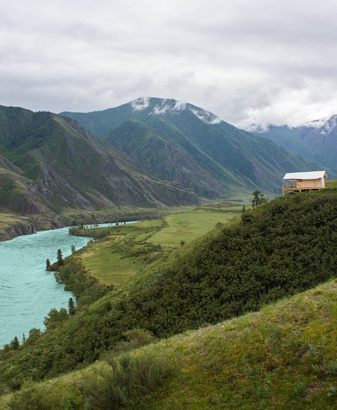 В уютных трехместных тент-домах глэмпинга каждый сможет насладиться атмосферой уединения и комфорта. С террасы открывается панорамный вид на величественные горы и бурлящую реку, что делает утренний кофе особенно приятным. Завтраки здесь не просто вкусные — они наполнены заботой и разнообразием: от теплых каш до ароматной выпечки, каждая деталь продумана, чтобы зарядить энергией на весь день.