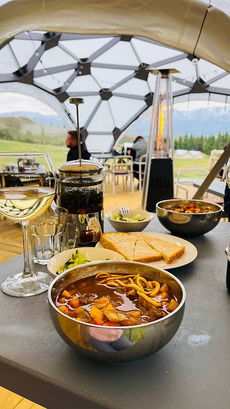 Читать полностьюВ ресторане-баре глэмпинга «Выше гор Курай» вы можете насладиться истинно национальной кухней, где каждое блюдо — шедевр, созданный из отборных алтайских фермерских продуктов. В меню также представлены вегетарианские блюда.