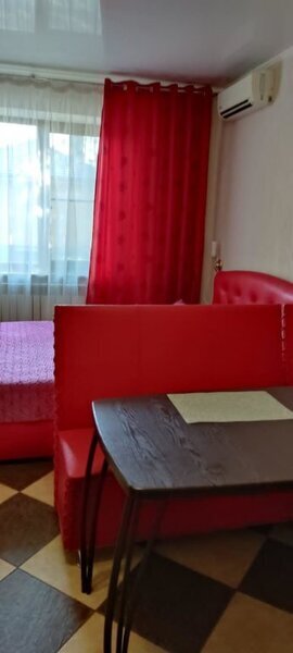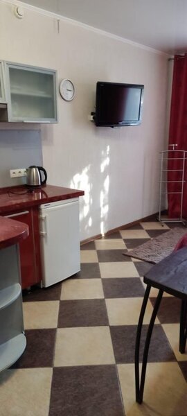 - мини — кухня: холодильник, индукционная варочная панель, кухонная мебель, столовая посуда и столовые приборы, чайник, угловой диван, столик;