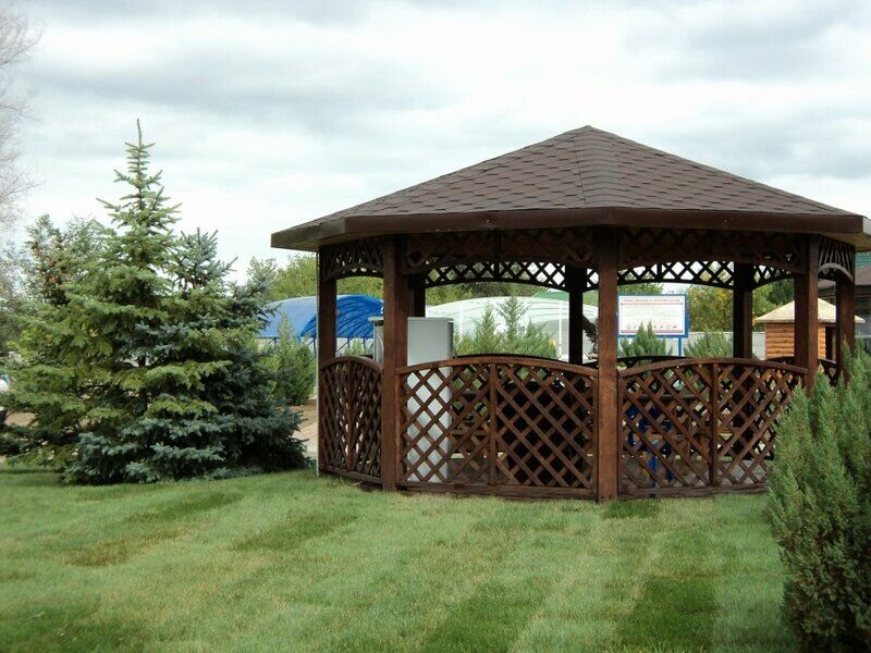 Беседка большая (50 - 80 человек) - (аренда с 11-00 до 23-00 (холодильник, столы, стулья, скамьи) 300 - 500 ₽/чел. (минимальная оплата за аренду 5000 ₽).