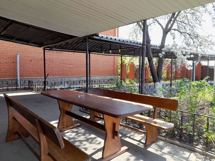 На территории дома есть мангальная зона с большим столом и просторная парковка на 4 автомобиля.