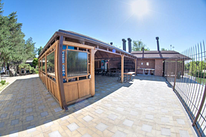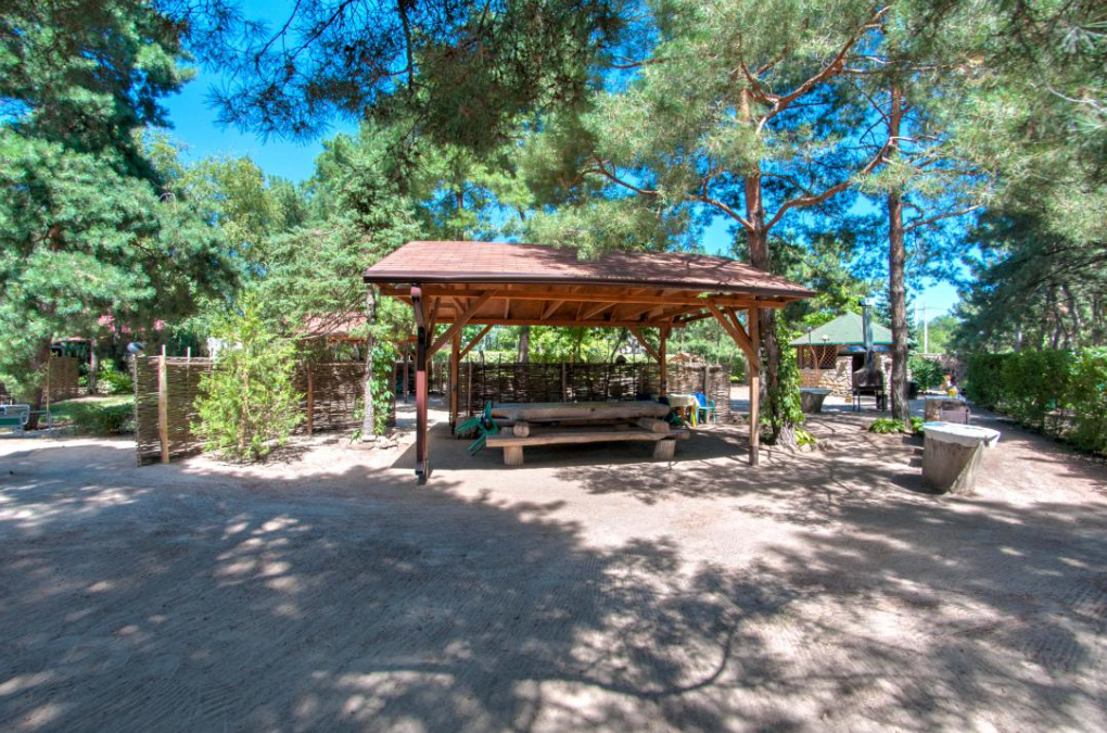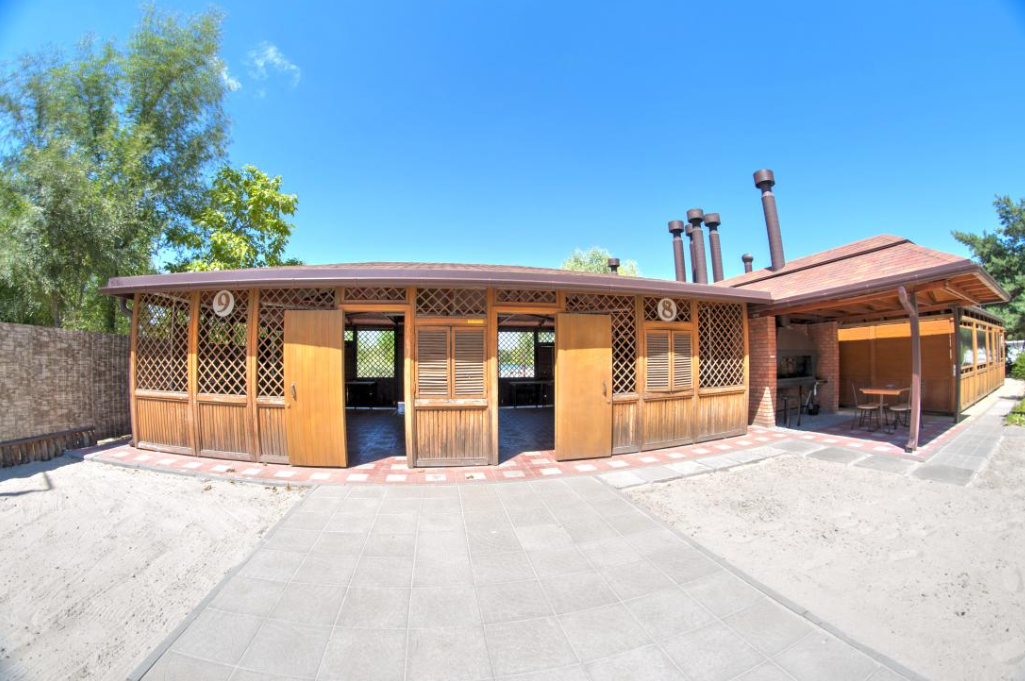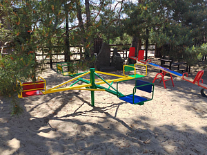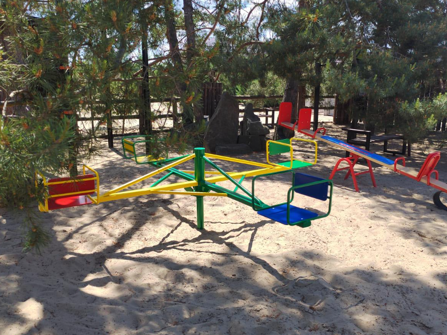 На территории много беседок, больших и маленьких, рядом с Доном и в прохладной тени сосновой рощи. Все беседки имеют освещение и электрические розетки. Рядом с беседками размещены холодильник, мангалы и мойки.