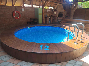 Инфраструктура: бассейн, зона отдыха, простыни, душ, чай/угощенияМинимальное время аренды: 3 часаВремя работы: от с 11:00 до 22:00Отличное место для проведения вечеринки. Большой добротный стол, камин, мангал, кухня, холодильник, бассейн с холодной водой и все на открытом воздухе. В летнее время можно отдохнуть компанией до 12 человек.