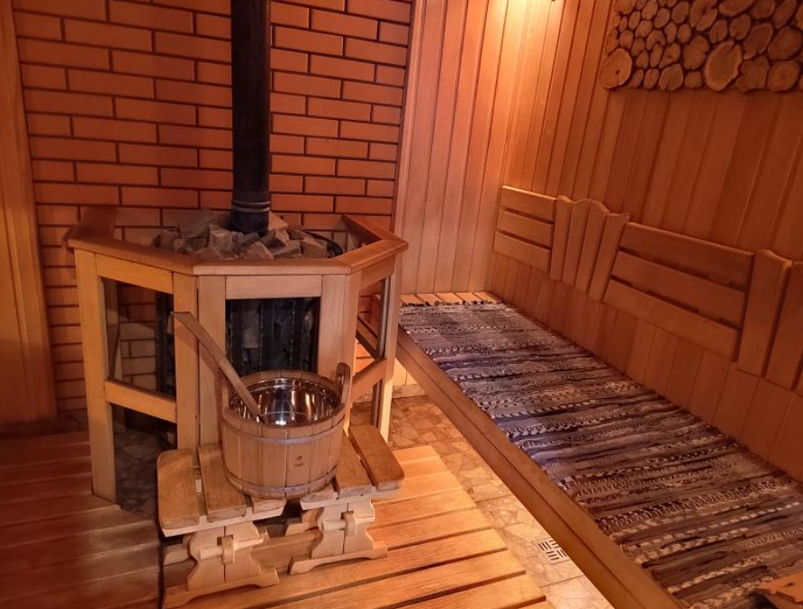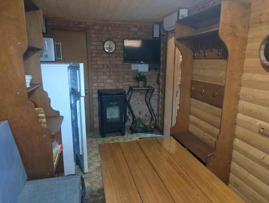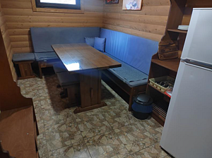 Отличное место для проведения вечеринки. Большой добротный стол, камин, мангал, кухня, холодильник, бассейн с холодной водой и все на открытом воздухе. В летнее время можно отдохнуть компанией до 12 человек.