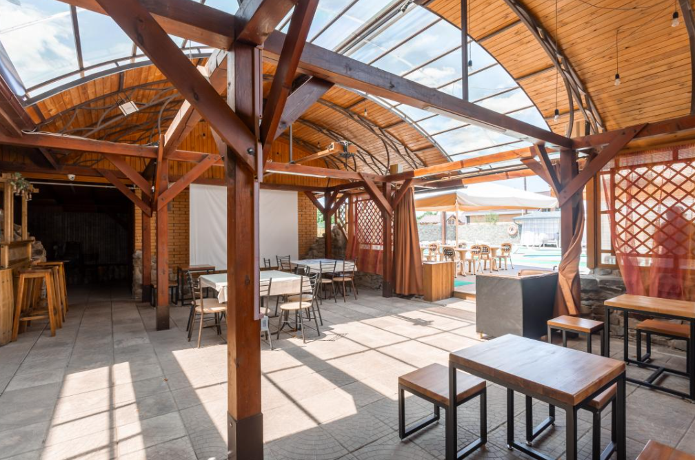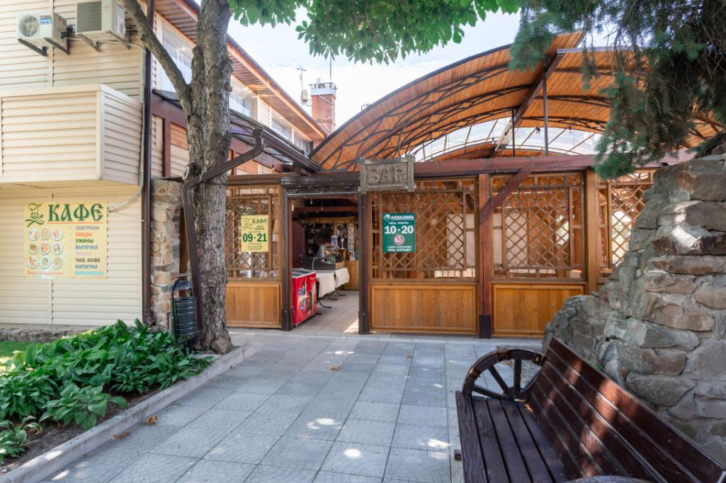 На территории находятся специальные мангальные зоны с принадлежностями для барбекю, которые позволяют гостям приготовить любимые блюда на открытом огне. Для больших и дружных компаний в аренду предлагаются беседки на свежем воздухе, расположенные в уютной парковой зоне. Также есть собственный песчаный пляж с пологим входом в воду.