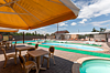 Небольшой плавательный бассейн для взрослых и детей входит в комплекс открытых бассейнов на территории аквазоны. Рядом находятся места для отдыха под большими зонтами. Работает бар, есть душ.