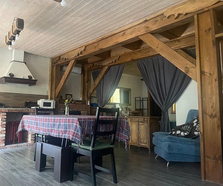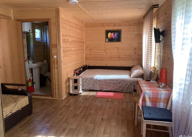 Отдельностоящий дом, в доме имеется: диван, кресло-кровать и 2 раскладушки.