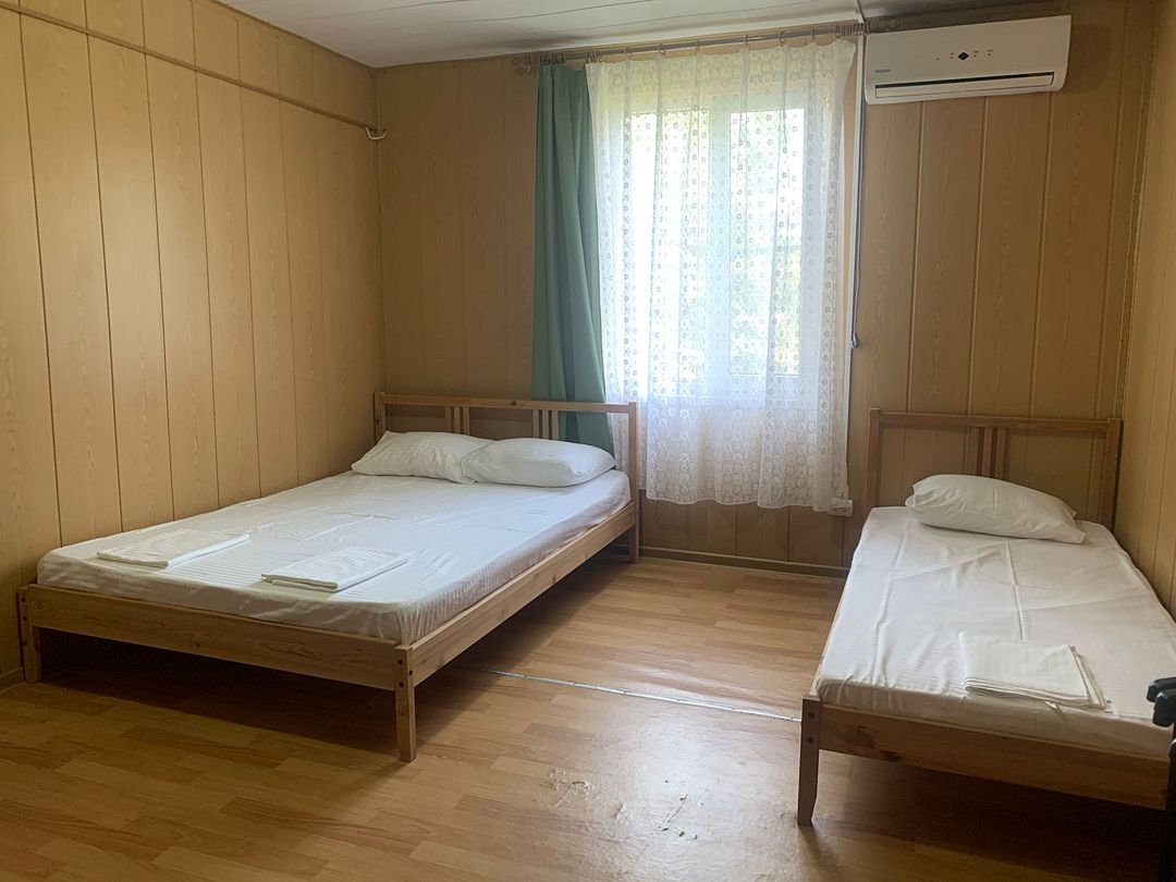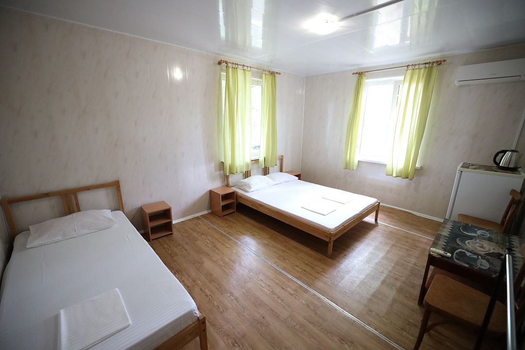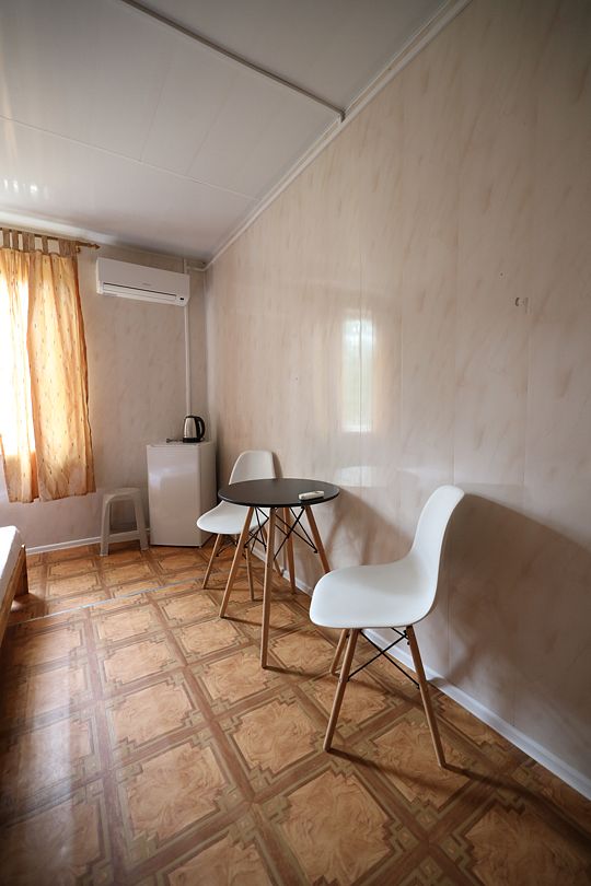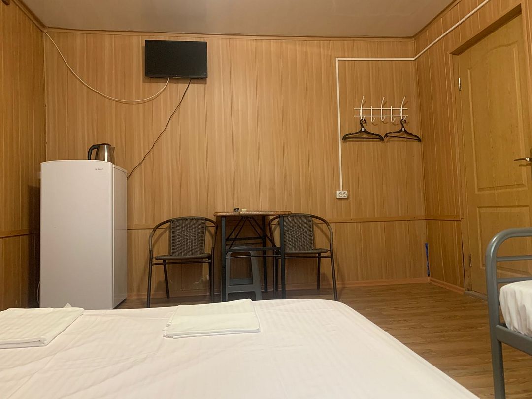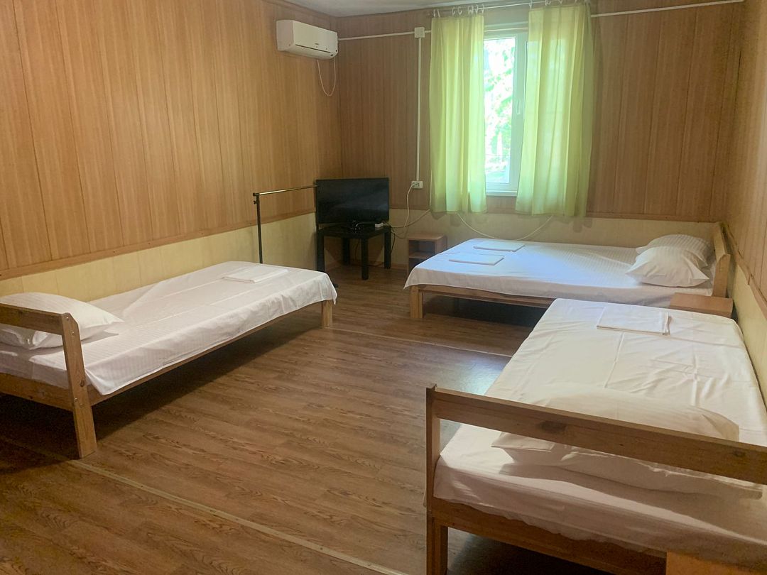 Номера стандарт (сплит-системы, холодильники в номере, туалет и раковина на 4-6 номеров). Душевые с холодной и горячей водой отдельно на территории.