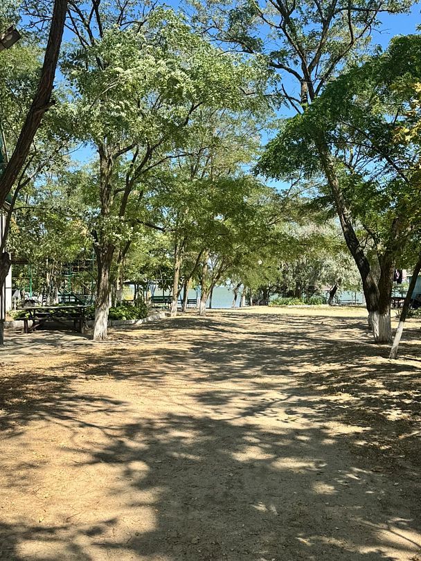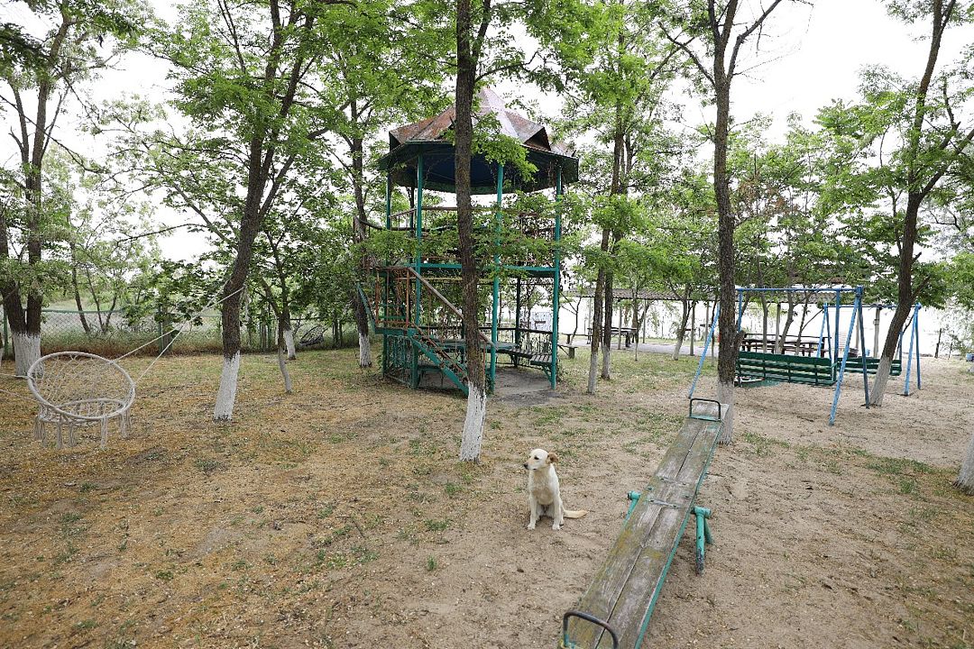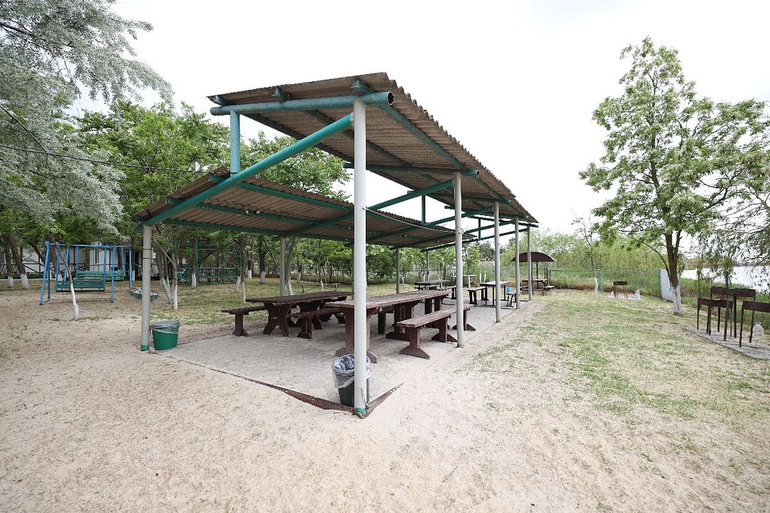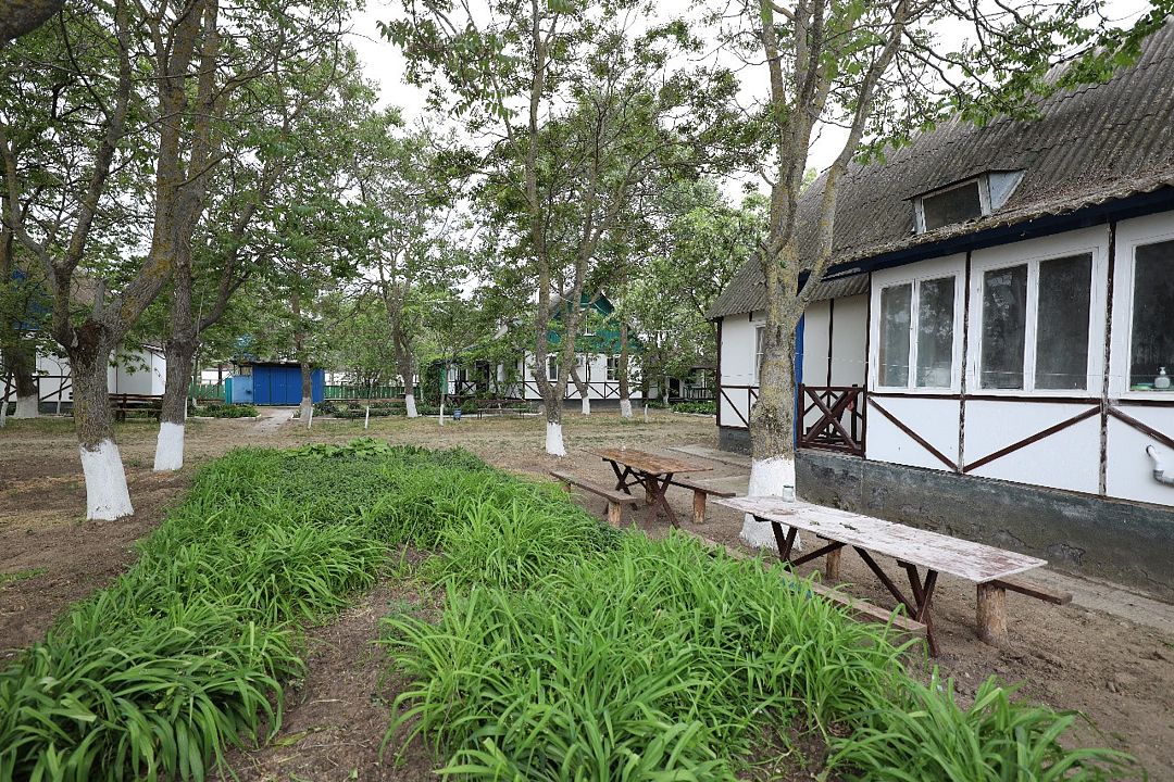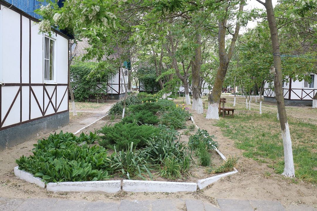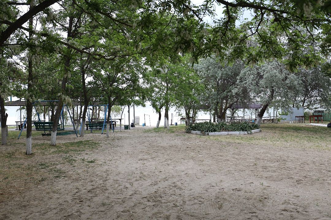 База расположена в зеленой зоне на огороженной территории. База отдыха имеет свой выход на пляж, который является продолжением её территории. Ласковое и теплое Азовское море особенно подходит для детского отдыха. Небольшая глубина Таганрогского залива Азовского моря идеально подходит для купания детей. Море плавно набирает глубину, нет впадин, ям и камней.