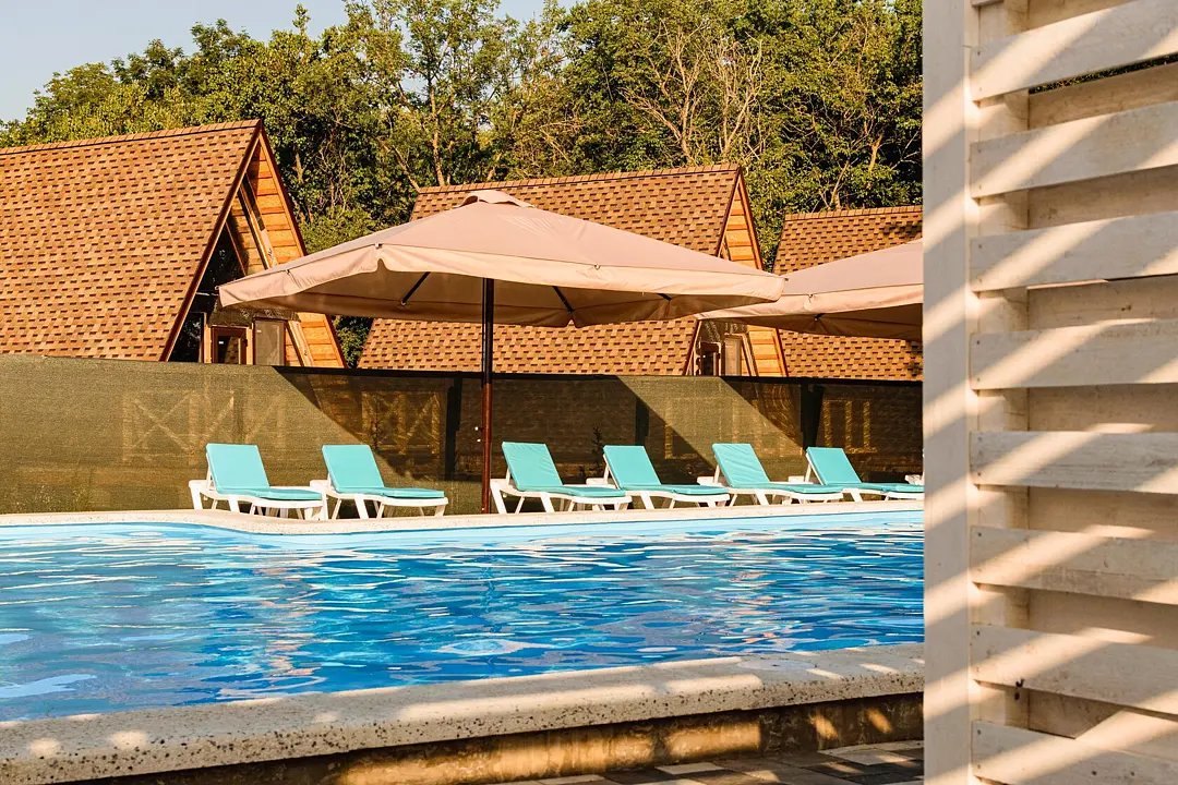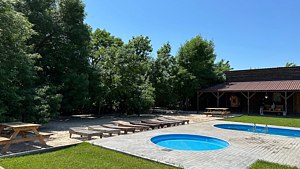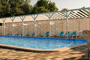 Тип бассейна: открытый бассейнРядом с бассейном: шезлонгиПериод работы: летний сезонБольшой бассейн с зоной отдыха. Работает с мая по сентябрь.