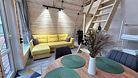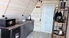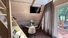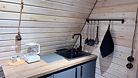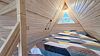 Двухместный двухуровневый дом A-frame повышенной комфортности позволит разместится двоим взрослым на основных местах и двоим детям — на дополнительном.