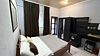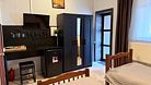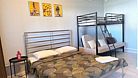 В номере есть всё необходимое для уютного проживания: большая кровать, двухъярусная кровать для детей, кондиционер, телевизор, Wi-Fi, мини-холодильник, а также набор красивой посуды, полотенца, косметические принадлежности и фен.