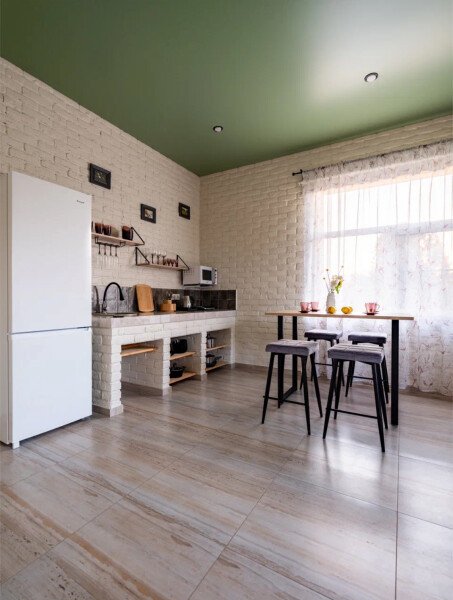 В номерах-апартаментах предусмотрены полноценные кухни с необходимым оборудованием, а в стандартных номерах вас ждет чайный и кофейный набор. Общая кухня, обставленная с комфортом, имеет вместительный холодильник, духовой шкаф и великолепный вид на территорию усадьбы, вдохновляющий на уютные завтраки и обеды.
