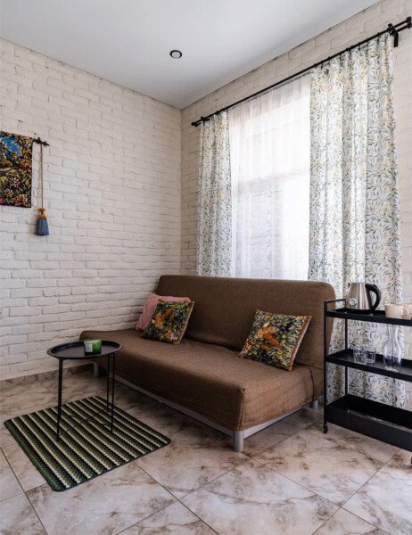 Элегантный двухкомнатный номер. Состоит из спальной комнаты и уютной гостиной, с собственной зоной кухни и верандой с мангалом.