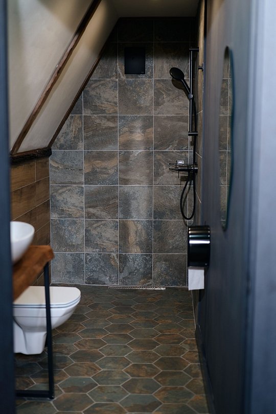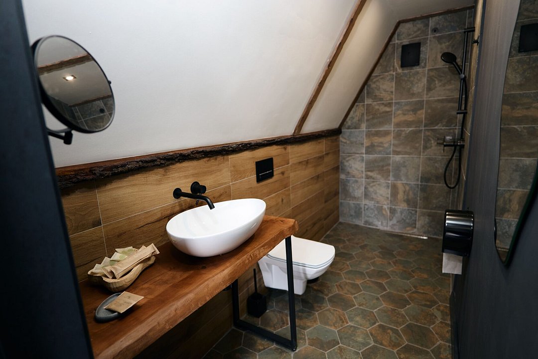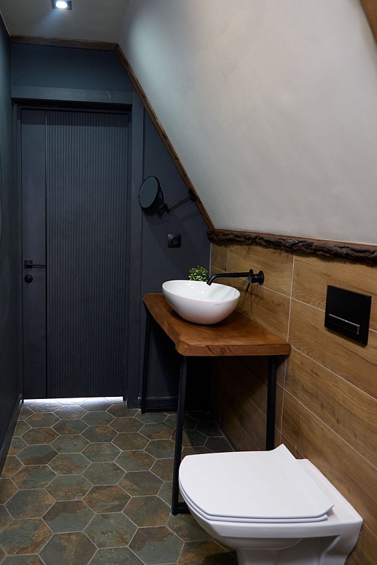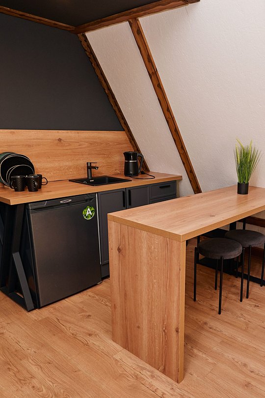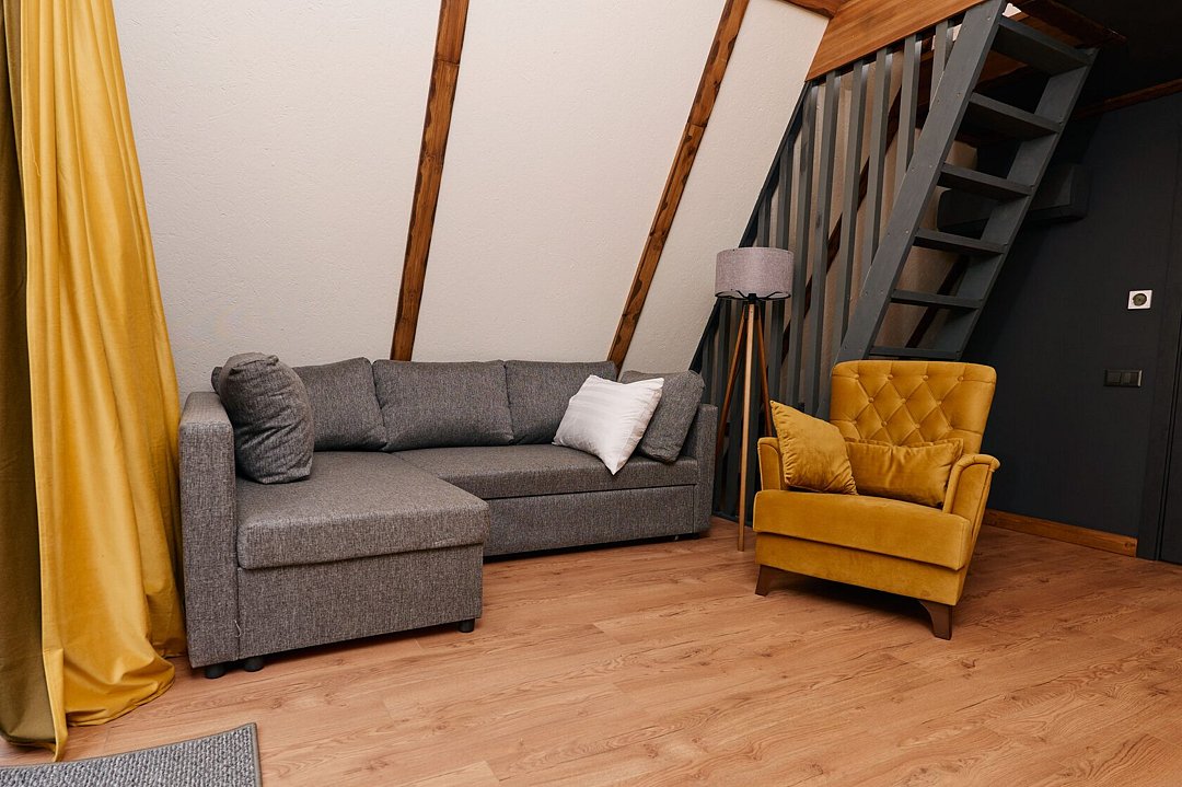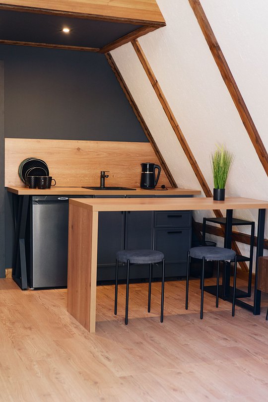 Однокомнатный номер с мансардой, санузлом и террасой.