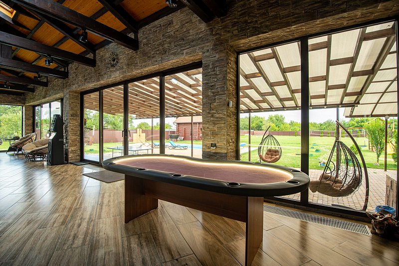 Территория, инфраструктура и удобстваТеррасаЧитать полностьюБаза отдыха приглашает вас насладиться атмосферой истинного комфорта и умиротворения в уютной зоне отдыха на закрытой террасе. Пространство с панорамными окнами, мягкими диванами и обеденным столом создает ощущение уюта и релакса. Здесь вы можете с удовольствием провести время за приятной беседой, наслаждаясь мерцанием камина и плавными ритмами музыки. К вашим услугам также оборудованная кухонная зона для приготовления любимых блюд, телевизор для развлечения и даже стол для игры в покер — все, что необходимо для незабываемого отдыха в компании друзей или близких. ТеррасаОписаниеБаза отдыха приглашает вас насладиться атмосферой истинного комфорта и умиротворения в уютной зоне отдыха на закрытой террасе. Пространство с панорамными окнами, мягкими диванами и обеденным столом создает ощущение уюта и релакса. Здесь вы можете с удовольствием провести время за приятной беседой, наслаждаясь мерцанием камина и плавными ритмами музыки. К вашим услугам также оборудованная кухонная зона для приготовления любимых блюд, телевизор для развлечения и даже стол для игры в покер — все, что необходимо для незабываемого отдыха в компании друзей или близких. Открытый бассейн с подогревомБесплатно (Информация от 04 октября 2024) На территории расположен открытый бассейн с комфортной температурой воды, которая идеально подходит для расслабляющего плавания. Уютные шезлонги, располагающиеся вокруг бассейна, создают атмосферу для отдыха и принятия солнечных ванн, позволяя забыть о повседневной суете и насладиться спокойствием и гармонией природы. Открытый бассейн с подогревомОписаниеТип бассейна: открытый бассейнВода в бассейне: подогреваемый бассейнРядом с бассейном: шезлонгиНа территории расположен открытый бассейн с комфортной температурой воды, которая идеально подходит для расслабляющего плавания. Уютные шезлонги, располагающиеся вокруг бассейна, создают атмосферу для отдыха и принятия солнечных ванн, позволяя забыть о повседневной суете и насладиться спокойствием и гармонией природы. СтоимостьБесплатно