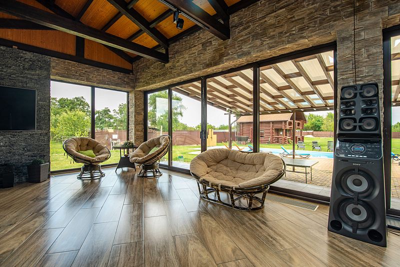 Читать полностьюБаза отдыха приглашает вас насладиться атмосферой истинного комфорта и умиротворения в уютной зоне отдыха на закрытой террасе. Пространство с панорамными окнами, мягкими диванами и обеденным столом создает ощущение уюта и релакса. Здесь вы можете с удовольствием провести время за приятной беседой, наслаждаясь мерцанием камина и плавными ритмами музыки.