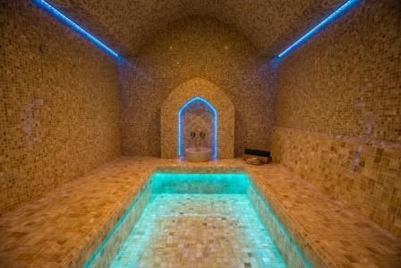 Наслаждайтесь водными процедурами в сауне и хамаме, выполненных в классическом традиционном стиле. Дополните удовольствие ароматным травяным чаем в комнате отдыха, который мы приготовим с любовью и заботой о Вас!
