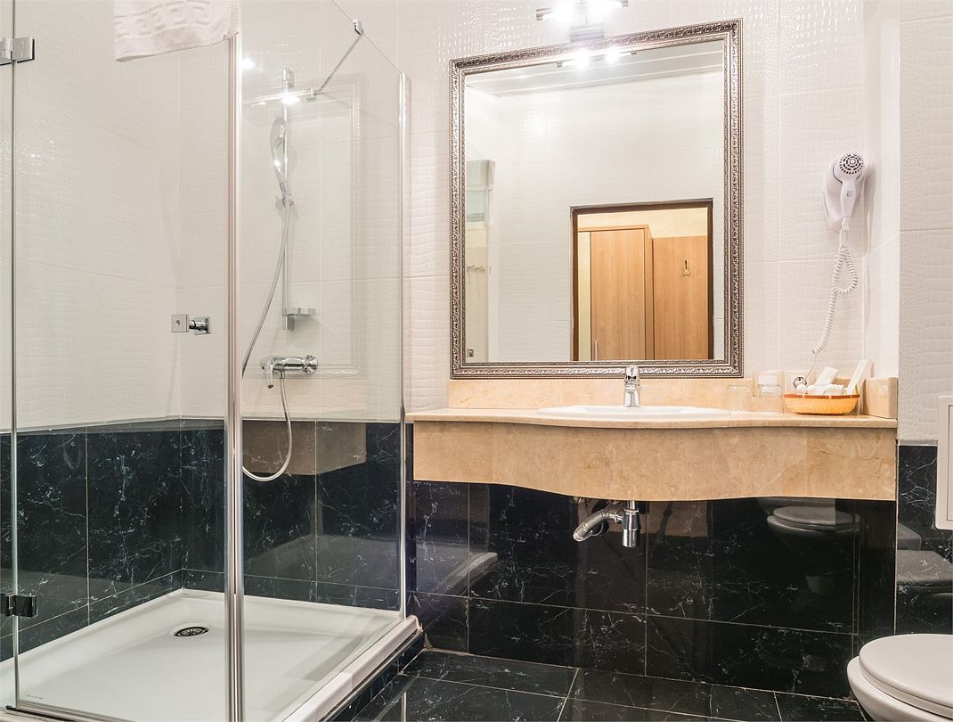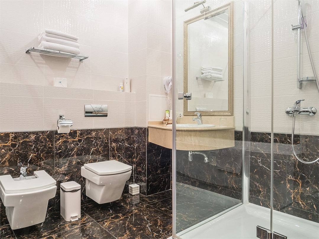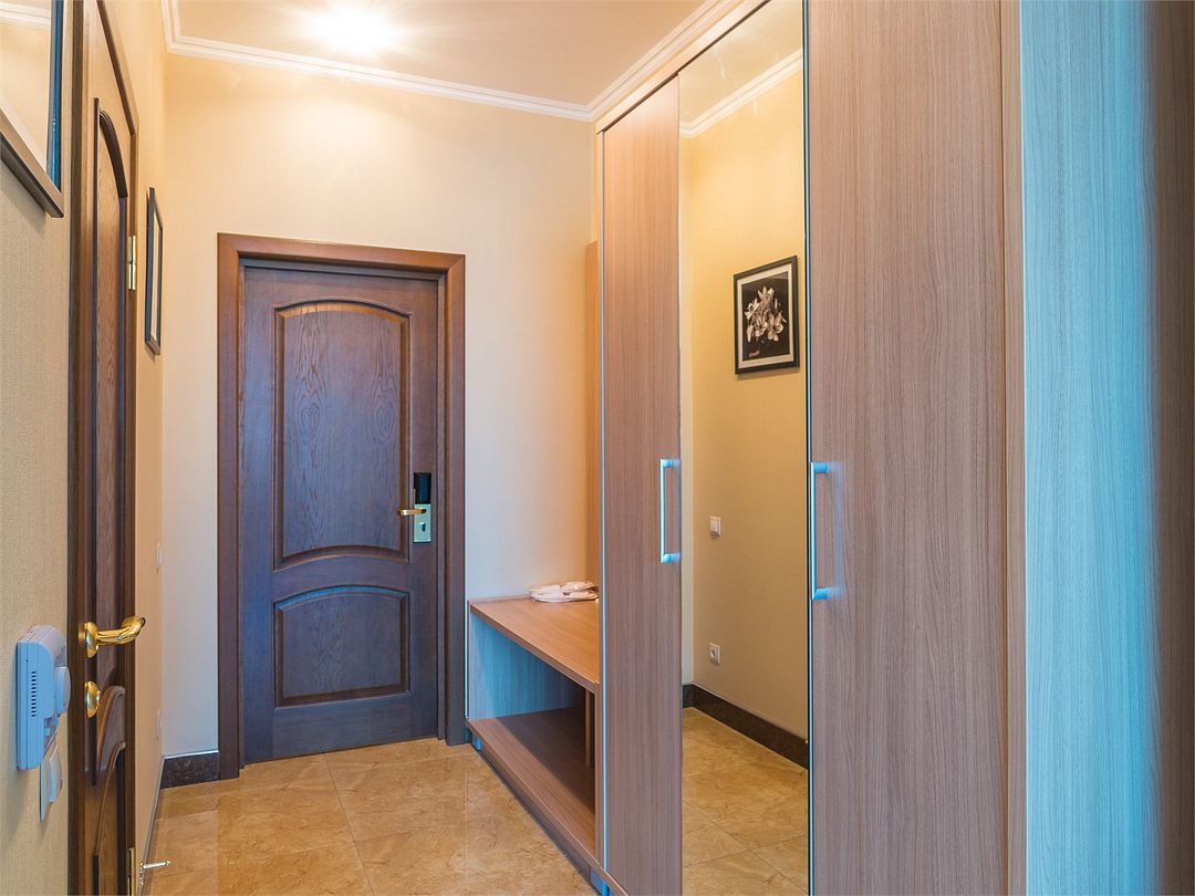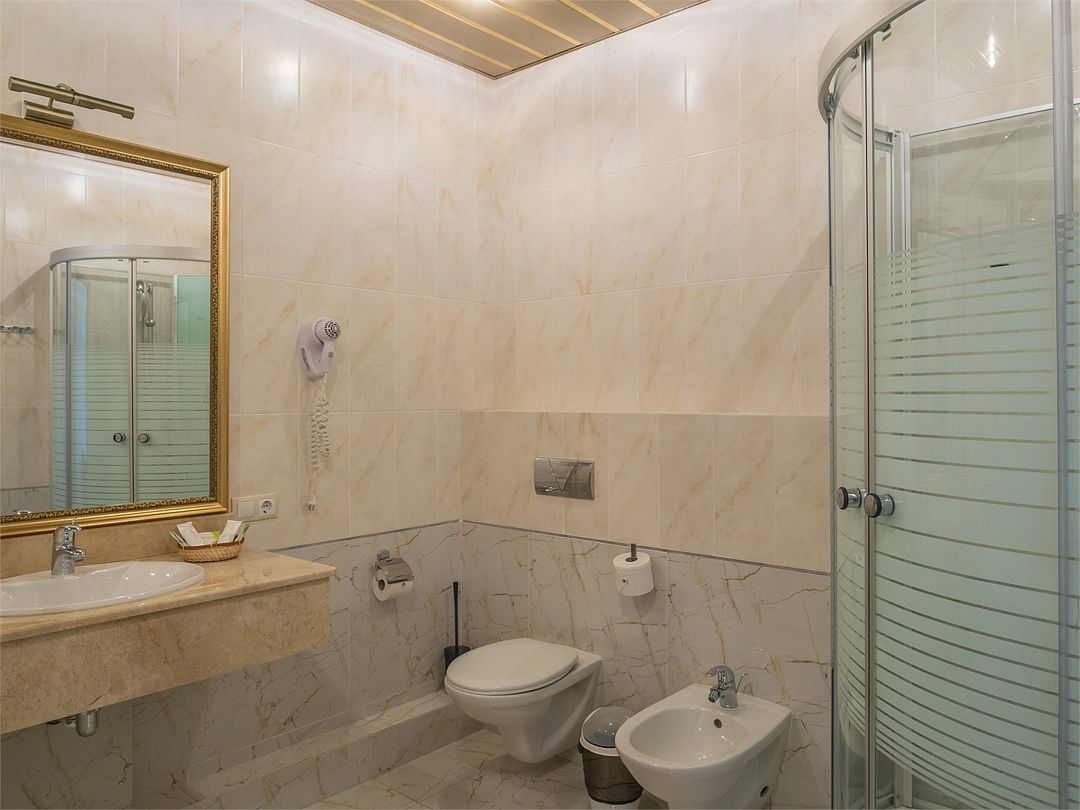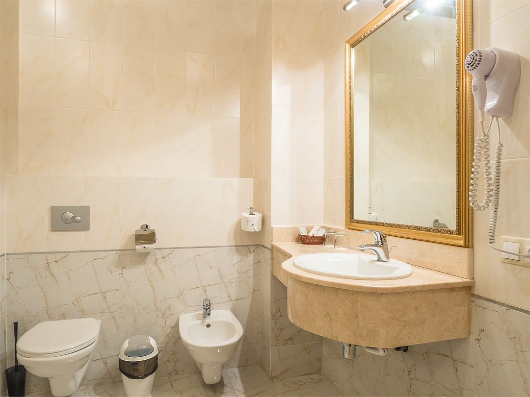 Комфортный однокомнатный номер с зоной коридора и просторной ванной комнатой. Номер оснащен двуспальной кроватью с прикроватными тумбочками и бра. При необходимости кровать может быть трансформирована в две односпальные кровати. Номер рассчитан на одно- и двухместное размещение. Возможно бесплатное размещение ребенка до трех лет на одной кровати с родителями или с предоставлением детской кроватки.Услуги и удобства